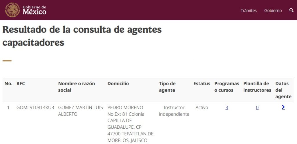 Para verificar si un Instructor es un ACE, se puede consultar el Buscador Oficial de Agentes registrados ante la STPS.