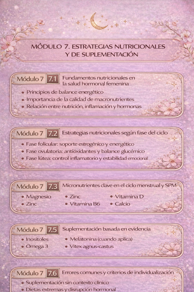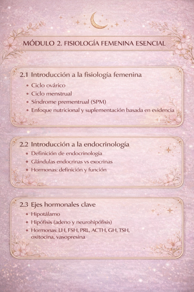 Amplía tus horizontes en el tratamiento del SOP con nuestra Certificación flexible y a la vanguardia. Ideal para Nutriólogos, Médicos, Entrenadores, Instructores, y estudiantes de las dichas carreras que buscan profundizar estrategias personalizadas en distintos contextos clínicos. Estudia desde cualquier lugar y dispositivo, solo necesitas conexión a internet y compromiso. Nuestro plan de estudios abarca desde fundamentos hasta enfoques especializados, permitiéndote un aprendizaje escalable y aplicable.