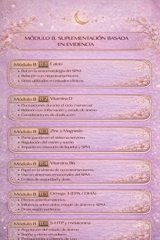 Fisiología Femenina. Ciclo Ovárico, Ciclo Menstrual, Síndrome Premenstrual. Nutrición y Suplementación.