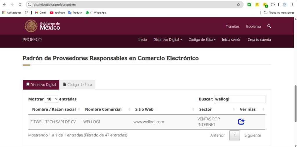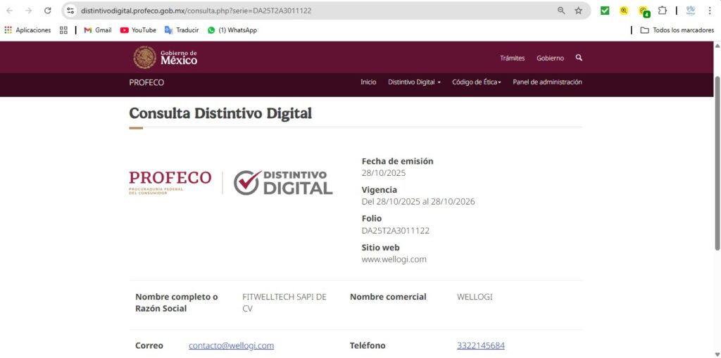 Distintivo Digital ante PROFECO. Wellogi Academy